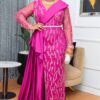 Our “Noir Glamour” Sequin Gown is a show-stopping masterpiece of modern elegance. This form-fitting black maxi dress features a stunning all-over sequin pattern with delicate beading, creating a mesmerizing sparkle. The dress is cinched at the waist with a bold silver-toned belt and features a luxurious black satin wrap that drapes beautifully down the front, creating an asymmetrical and dramatic silhouette. The sheer long sleeves are also adorned with intricate beaded embellishments.