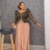 Our “Fuchsia and Noir” Peplum Set is a bold and sophisticated two-piece outfit that combines structured tailoring with vibrant ruffles. The blazer-style top is black, featuring intricate fuchsia embroidery in a floral pattern and dramatic, tiered ruffles on the sleeves and waist. A wide, fuchsia-bordered black belt cinches the waist, creating a stunning peplum silhouette. The ensemble is completed with a sleek, black fitted midi skirt.