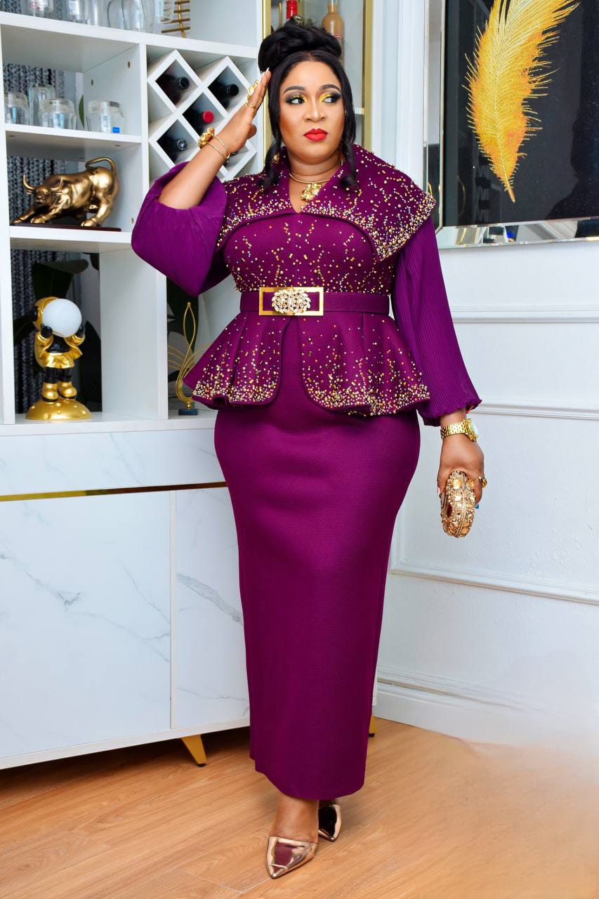Our “Noir and Rose Gold” Pleated Set is a luxurious two-piece ensemble that blends rich textures and intricate details. The top features a black and gold textured bodice with a V-neckline and sheer, puffed sleeves. The blouse has a flattering peplum silhouette with a subtle gold trim. The matching skirt is a flowing, pleated maxi-length piece in a beautiful, shimmering rose gold color.