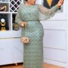 Ready to shimmer and shine?Interest: Our “Midnight Sapphire” Beaded Gown is a breathtaking, all-over beaded and sequined dress in a luxurious dark blue hue. The gown features a beautiful, flowing design with a unique tiered and pleated top portion that creates a subtle, elegant ruffle effect. The sleeves are sheer and adorned with delicate beaded and sequined patterns, giving them a glamorous, ethereal look. The entire gown is covered in a intricate, shimmering pattern of beads and sequins that catches the light beautifully, making it a true statement piece.