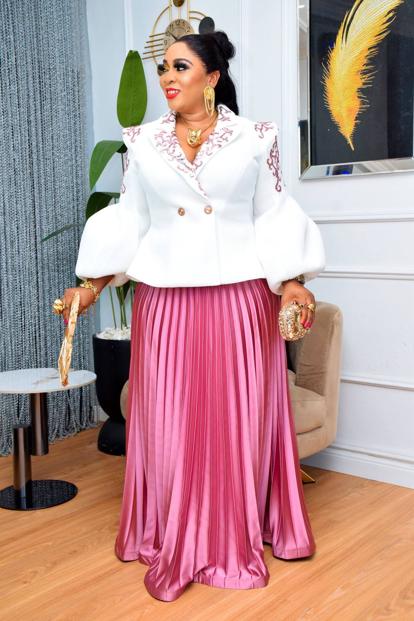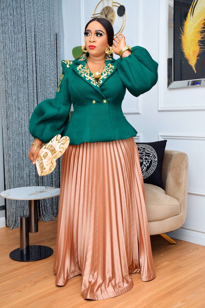 This ensemble is perfect for a formal event, a gala, or any occasion where you want to make a powerful fashion statement. The rich color and dazzling beadwork will make you feel confident, stylish, and unforgettable.